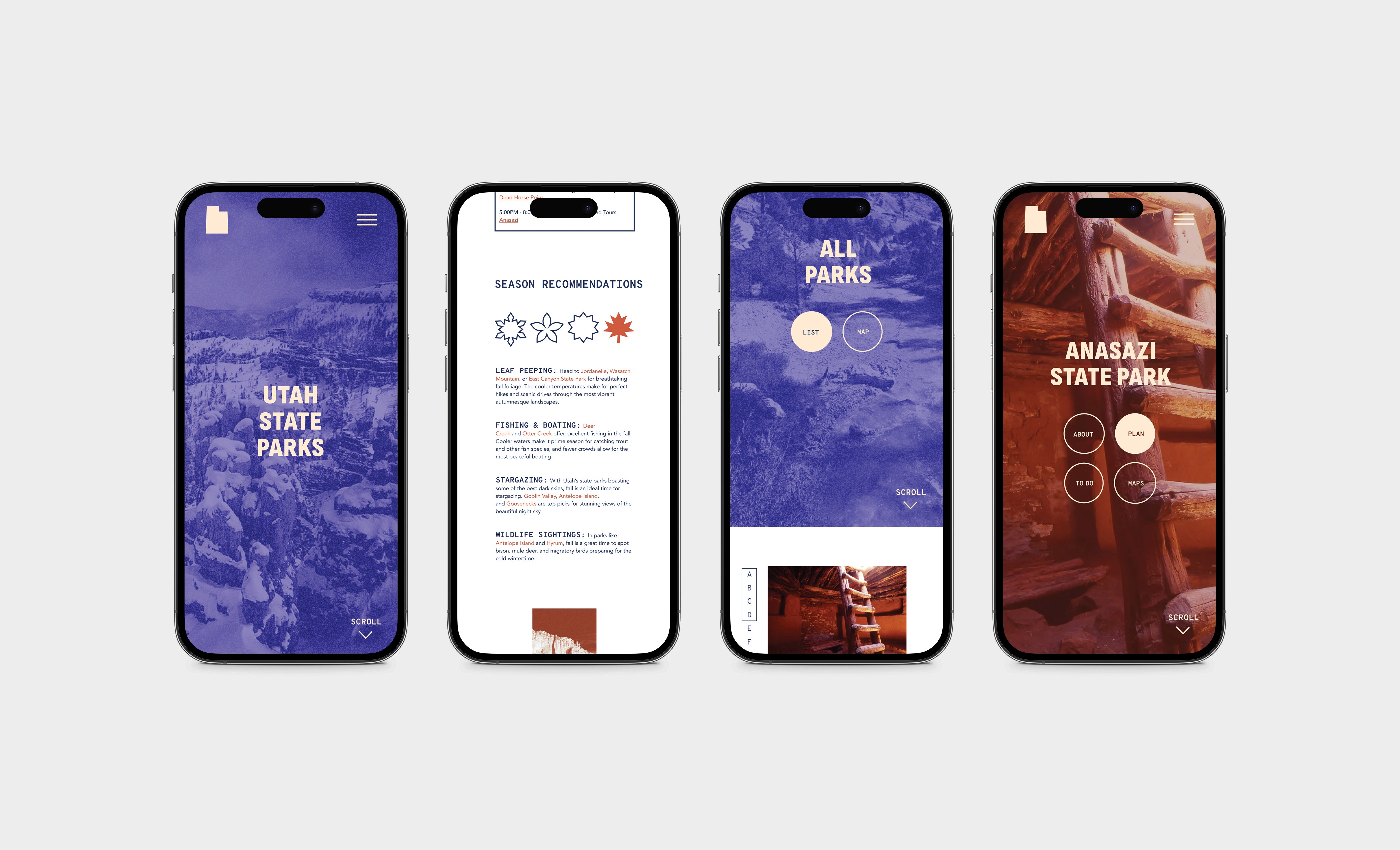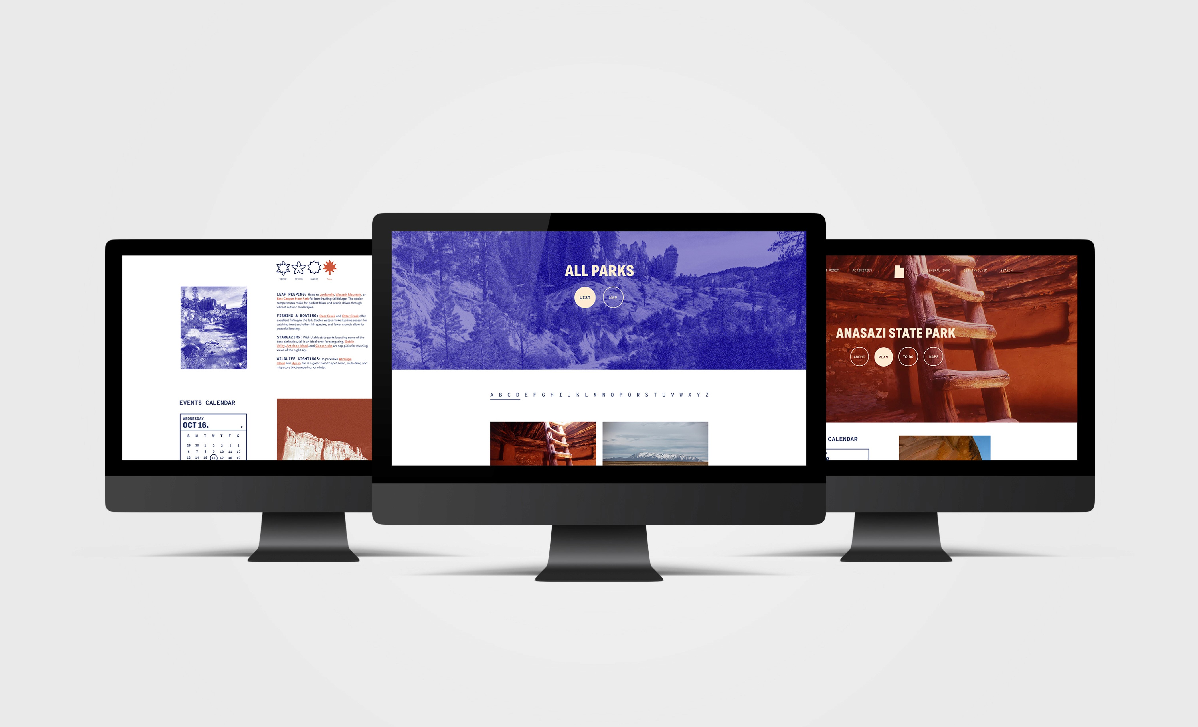 Utah is classically known for its beautiful western landscape ranging from mountain tops covered in "the greatest snow on earth" to intricate red rock formations. The Utah State Parks website was inspired by vintage field guides because it acts as an outdoorsman's guide to planning their next adventure. It includes aged aesthetic photography, monospace typefaces, and both warm and cool colors in a style that imitates the nostalgic and timeless memories that are made in Utah's 46 state parks.